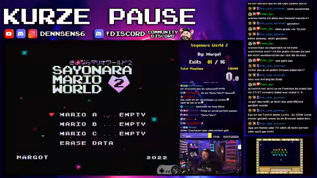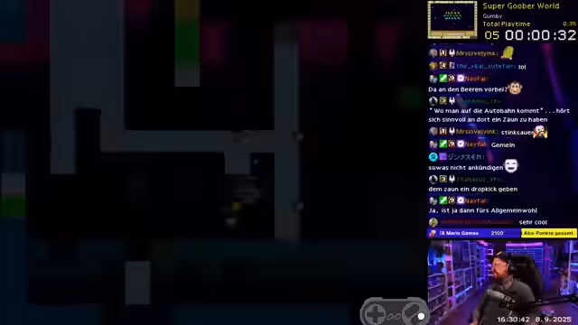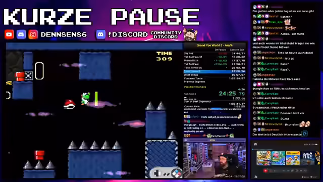 00:26:10Der Streamer beginnt mit dem Spielen eines Super Mario World Hacks, den er als 'cool' und 'ninjaartig' beschreibt. Parallel dazu wird die Organisation für das heutige 'Mario Party Jamboree' angesprochen. Da noch eine vierte Person für das Spiel gesucht wird, ruft er im Chat nach Teilnehmern. Dabei wird klargestellt, dass ein Mitspielen ohne Kamera absolut in Ordnung ist. Streamer betont, dass der Hauptfokus auf gemeinsamen Spaß liegt und nicht auf dem Sieg über die anderen Mitspieler.