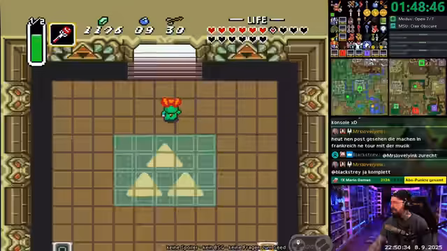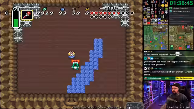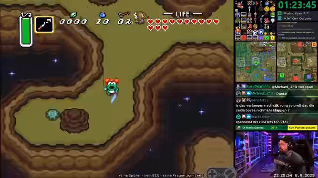 04:47:00Der Streamer kämpft während des Zelda ALTTPR Randomizer-Races mit einer unvorhergesehenen Spielsituation. Er hat wichtige Items, wie den Fire Rod, liegen gelassen, was seine Rennposition stark gefährdet. Seine Entscheidungen sind riskant, und er erkennt, dass sein Spielstil heute eher einem Negativbeispiel ähnelt. Die Jagd nach dem Ice Rod wird zur zentralen, fordernden Herausforderung des Rennens.