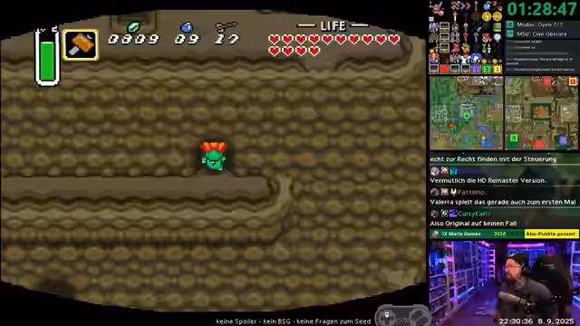 05:16:28Es gibt Probleme mit der Lautstärke und Schwierigkeiten, den Chat zu verfolgen. Der Streamer spricht über den ursprünglichen OG-Modus und äußert den Wunsch nach einer Bombe im Spiel. Die Teilnahme von 23 Leuten an einem Race wird als 'insane' bezeichnet und als Bestätigung dafür gesehen, dass die Teilnahme am Race die richtige Entscheidung war. Es folgen Diskussionen über Mario 64 und Hollow Knight, wobei der Streamer andeutet, dass er bald Hollow Knight spielen wird. Es gibt Überlegungen zur Logik des Spiels und Schwierigkeiten ohne Schwert. Der Streamer spricht über Sega-Content auf YouTube und bedauert, eine wichtige Höhle im Spiel vergessen zu haben. Es wird erklärt, dass sieben Kristalle benötigt werden, um Ganons Tower zu betreten und Ganon zu bekämpfen. Der Streamer spricht über seine Fehler im Spiel und vergisst wichtige Gegenstände. Es wird überlegt, ob man die Spiral Cave besuchen soll, und die Gier des Streamers wird thematisiert. Es folgt eine Diskussion über Fake-Flipper und ungewöhnliche Setups im Spiel.