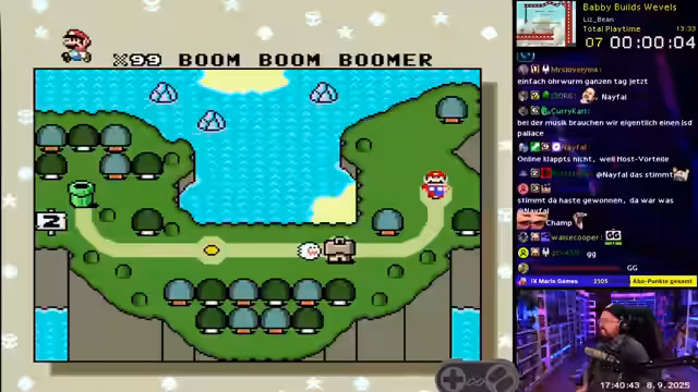 02:08:16Nachdem der abgeschlossene SMW-Hack als sehr gutgelobt wurde, wird der Fokus auf das anstehende Mario Party Jamboree gelegt. Der Streamer schaltet dazu die Nintendo-Kamera ein, um die stream-technische Qualität zu verbessern. Das Spiel Mario Party Jamboree wird als sehr beliebt auf Twitch eingestuft und der Streamer betont seine Freude an dem Spiel. Ein Stimmungswechsel ist spürbar, als der Streamer auf die Null Zuschauer im Game hinweist und mit zwölf Zuschauern fortfährt.