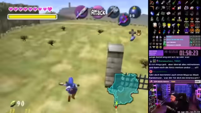 00:00:04Der Stream beginnt mit einem kurzen Gameplayabschnitt von Zelda: Ocarina of Time Rando. Der Streamer beschäftigt sich mit dem Seed und den Einstellungen, wobei er über das Item Hasenohren nachdenkt, die er zwar nutzt, sich aber im Nachhinein als Zeitverschwendung herausstellen. Er startet in Death Mountain Trail, findet schnell wichtige Items wie Goron Tunic und Magic, und checkt diverse Orte. Beim Erreichen des Marktes stellt er fest, dass dieser Teil des Seedes sehr zeitaufwendig ist und ihn frustriert.