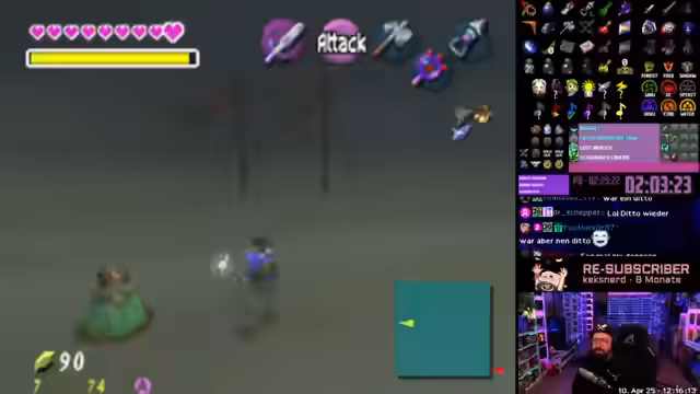 02:30:31Der Streamer konzentriert sich weiterhin auf den OOT Randomizer. Er ist im Go-Modus und sucht nach einem Small Key oder Bicky, um im Dungeon voranzukommen. Die aktuelle Situation, als Kind in bestimmten Dungeons zu sein, ist suboptimal, da er darauf hofft, dass der Song des Requiem hinter Burning Cake liegt. Sein Ziel ist es, den Raum zu verlassen, jedoch findet er zunächst keinen Schlüssel, was ihn frustriert und den Fortschritt verlangsamt. Das Finden des richtigen Schlüssels ist entscheidend, um weiterzukommen.