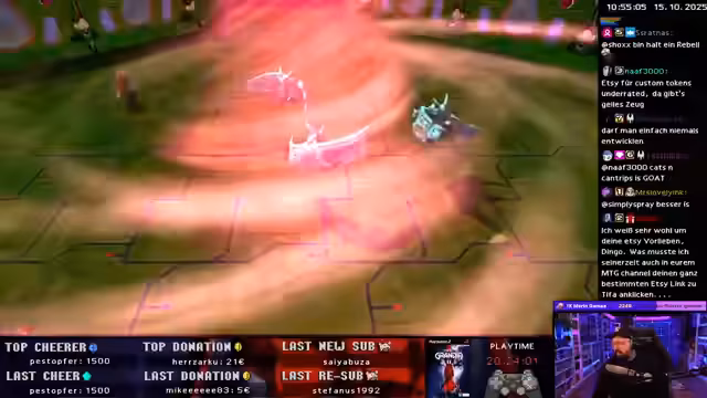 02:14:05Der Streamer beginnt den Kampf gegen die Universal Samen, initialisiert diesen aber versehentlich, was zu einem vorzeitigen Ende führt. Nach einem Reload des Spiels startet der Kampf erneut, und der Streamer analysiert die Angriffsmuster und Hitpoints der Feinde. Er erwägt die Nutzung von Drachen-Schock, da dieser keine Mana-Kosten verursacht, und diskutiert die Verteilung von Attributen wie Vitalität und Tempo, um seine Charaktere zu optimieren. Die Entscheidungen werden laufend während des Kampfes getroffen, um die Schadensausbeute zu maximieren und die Angriffe der Gegner zu unterbrechen.