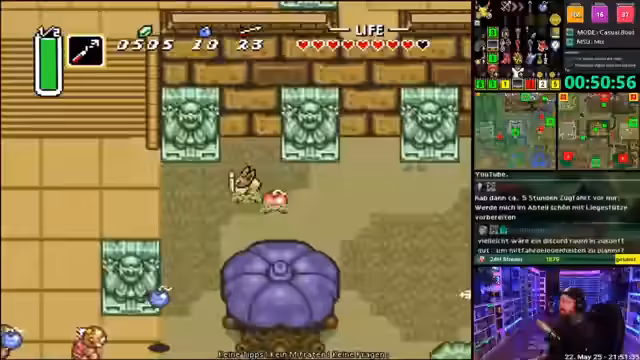 05:27:50Der Streamer äußert seinen Stress über den vollen Terminplan von Mai bis August, der keine freien Wochenenden mehr zulässt. Neben dem geplanten Live-Event und der Gamescom ist auch eine Reise nach Japan geplant. Dies beeinträchtigt die Performance bei Spielen wie Zelda ALTTPR, bei dem er trotz guter Items wie einen Mirror und eine Flöte einen schlechten Seed erhielt.
