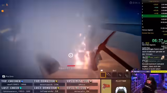 00:03:31Nachdem der Streamer im aktuellen Spiel ein Phänomen namens Moonfall aus den Fingern zaubert, gelingt es ihm, den finalen Bereich zu erreichen. Er scheitert zunächst am Sound, der die Story überdeckt, findet aber seinen Weg zum Boss. Trotz eines schlimmen Darkrooms und eines gefürchteten Bosses, dem er mit Glück entkommt, schafft er es, die Hälfte des Spiels zu absolvieren. Die Controller-Probleme und die Performance sind weiterhin ein Dauerthema.