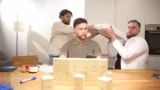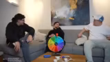 01:37:14Das Glücksrad wird vorbereitet und erste Aufgaben werden besprochen. Währenddessen beginnt man, die 'scharfe Sauce' für eine der anstehenden Challenges zu mixen. Daniel ist der Erste, der die Aufgabe zieht, den Mix zu trinken. Nach anfänglichem Zögern und Murren wird ihm die Flüssigkeit verabreicht. Nachdem er die Mischung aus Chili, Pfeffer und Popcorn getrunken hat, entsteht eine hitzige Diskussion über die Spiciness und den Zeitpunkt des Nachspülens.