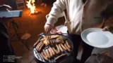 04:18:18Nachdem die Hauptphase der Bestellabwicklung beendet ist, wechselt der Stream das Setting ins Freie. Ein Lagerfeuer wird aufgebaut, bei dem es zunächst zu technischen Schwierigkeiten beim Entzünden kommt. Letztendlich gelingt es, ein stabiles Feuer zu entfachen. Der Streamer zeigt die für das Grillen vorbereiteten Lebensmittel, darunter Hüftsteak und Würstchen, und erklärt, dass der Wechsel draußen einen neuen Höhepunkt des Streams darstellt und das Lagerfeuer-Atmosphäre für die weiteren Stunden sorgen soll.