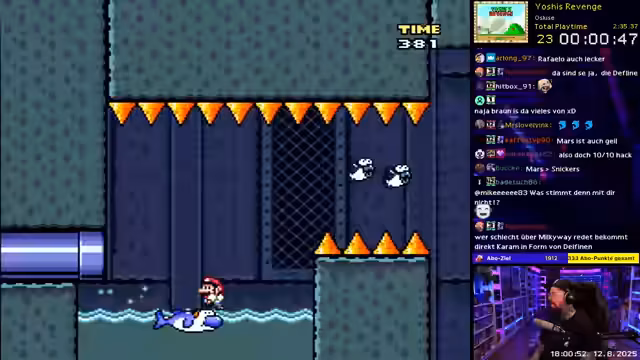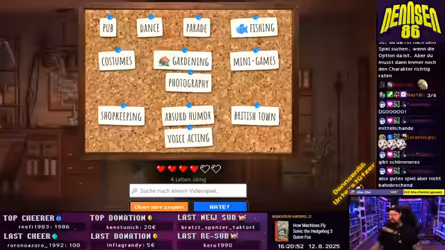00:02:34Der Streamer startet einen Mario 64-Lauf und stößt dabei auf verschiedene Schwierigkeiten, wie den schweren Modus, der als dumm und frustrierend empfunden wird. Während des Spieles interagiert er intensiv mit dem Chat, rezipiert Kommentare und wird aufgeladen, als "Pisser" oder "Gieriger" bezeichnet. Er beklagt die Verwendung von Chucks in Mario Maker-Levels, die diese unangenehm machen, und diskutiert über seine anstehende Gamescom-Teilnahme, wo er an der Capcom-Rocket Bean Stage und der Opening Night Live teilnehmen wird.