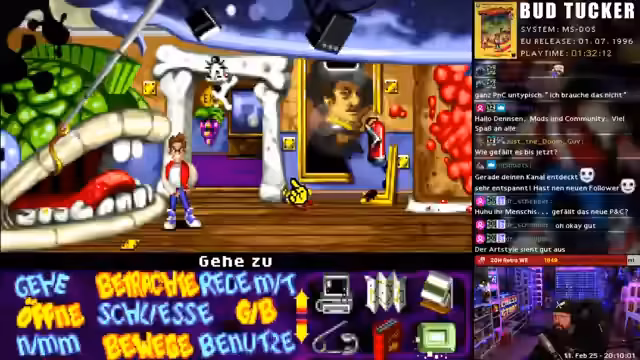 02:27:54Es wird eine Kooperation im Trading Card Bereich auf der Gamescom geben, weitere Details folgen in der nächsten Woche. Der Streamer startet das Point-and-Click-Adventure Bud Tucker in Double Trouble. Er äußert seine Vorfreude auf das Spiel und lobt das Oldschool-Grafikdesign sowie das Verben-Interface. Er hofft auf plausiblere Rätsel als bei Discworld. Nach einer kurzen Pause beginnt er das Spiel und kommentiert die Grafik, die an Lernsoftware aus den 80ern erinnert. Die Sprachausgabe wird gelobt. Die Handlung beginnt damit, dass der Professor eine Dupliziermaschine für Pizza erfunden hat, die aber von Bösewichten gestohlen wird. Der Spieler übernimmt die Rolle von Bud Tucker, der den Professor retten muss. Bud Tucker ist ein Pizzabote, der in ein spannendes Abenteuer gerät, als eine Erfindung des Professors, eine Maschine zur Duplizierung von Pizza, gestohlen wird. Er macht sich auf die Suche nach dem Professor und den Dieben. Die ersten Schritte im Spiel beinhalten die Erkundung des Hotelszimmers und das Sammeln von Gegenständen wie Streichhölzern, einer Sicherheitsnadel und einem Fischerkennungsbuch. Er interagiert mit verschiedenen Charakteren und löst kleinere Rätsel.
