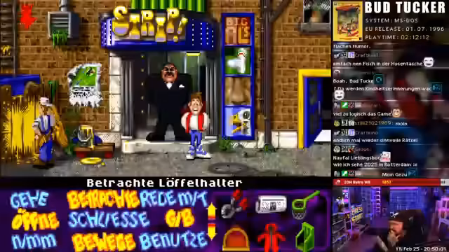 04:46:14Der Streamer spielt 'Bud Tucker in Double Trouble' und äußert sich positiv über das Spiel, obwohl er an einer Stelle nicht weiterkommt. Er erkundet verschiedene Optionen, um das Rätsel zu lösen, darunter die Verwendung eines Hummers und Rollschuhe. Er hat Bedenken, etwas im Spiel kaputt zu machen und vermeidet den Club. Er interagiert mit verschiedenen Charakteren, um Hinweise zu erhalten, wo sich die Docks befinden könnten. Nach zwei Stunden Spielzeit findet er das Spiel immer noch überragend, obwohl die Sprachausgabe manchmal trashig ist, was er aber witzig findet. Er speichert das Spiel, um später in die Kneipe zurückzukehren, da er vermutet, dass er die Jacke dort verwenden kann. Er trifft auf verschiedene Charaktere und versucht, Informationen über die Docks zu bekommen, wird aber verhaftet. Er skippt einige Szenen, die er bereits kennt, und bemerkt einen Bug im Spiel. Er versucht, mit verschiedenen Gegenständen zu interagieren, um weiterzukommen, und sucht nach Hinweisen, wo sich die Docks befinden. Schließlich erhält er die Information, dass sich die Docks in der Nähe eines Löffelhalters befinden.