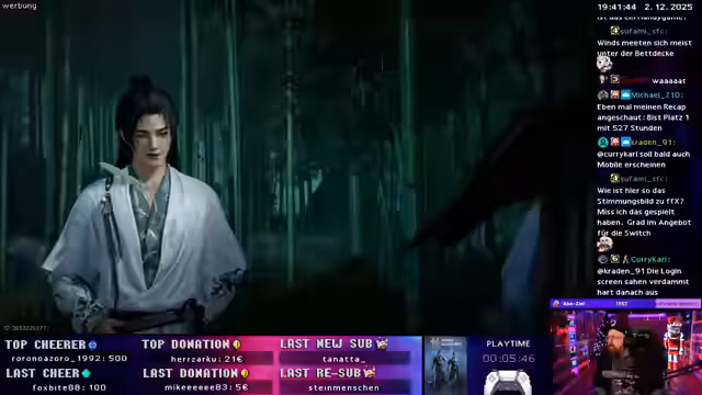03:44:07Nachdem er den Hauptinhalt von Zelda: TOTK für heute beendet hat, wechselt der Streamer zu einem anderen Titel. Er startet "Where Winds Meet", ein kostenloses Action-Rollenspiel mit Souls-Elementen, das er für eine Stunde spielt. Dies ist Teil einer Kooperation mit Twitch, bei der er für das Spielen Belohnungen erhält. Er gibt erste Eindrücke vom Gameplay und den Steuerungsoptionen.