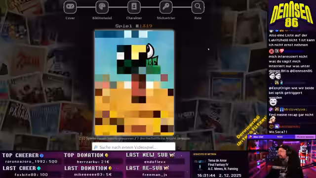 00:28:06Ein zentraler Teil des Streams ist die Interaktion mit der Community. Der Streamer beantwortet Chat-Nachrichten, lobt treue Fans und hat einen lockeren, humorvollen Umgangston. Ein Highlight ist die Vorstellung des Twitch-Recaps des Jahres. Es werden die meistgesehenen Clips, die Top-Kategorien (Retro hat Mario abgelöst) und die meistverwendeten Emotes, insbesondere das Flöten-Emote, präsentiert und reflektiert. Dies dient als unterhaltsame Rückschau auf das vergangene Streaming-Jahr und fördert den Gemeinschaftsgeist.