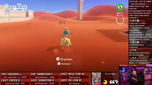 02:17:06Der Streamer kündigt an, dass die Live-Session um 18 Uhr endet, da er zu einem Nachbarschaftsgrillen geht. Nach dem Ende von Mario Odyssey plant er, direkt mit Tears of the Kingdom fortzufahren, anstatt den aktuellen Fokus beizubehalten. Diese Ankündigung zeigt die flexible Stream-Planung und den Übergang zu einem anderen Titel für den Rest des Tages.