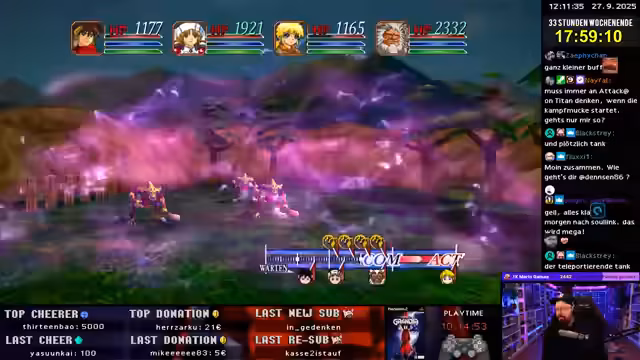 07:40:37Der Streamer beschäftigt sich mit den Gameplay-Elementen von Grandia 2, insbesondere mit der Wahl von Boni und Spezialfähigkeiten. Er entscheidet sich zunächst für einen zufälligen Hammer, der auf zehn Begegnungen begrenzt ist, was er als suboptimal empfindet. Später konzentriert er sich auf Builds, die auf 'Bindung' basieren, um Gegner zu schädigen und Gruppenschaden zu verursachen. Er experimentiert auch mit Builds, die auf Schaden in Abhängigkeit vom Mana-Status oder der Lebenskraft ausgelegt sind und stellt fest, dass einige Optionen wie die Bindung zwar theoretisch stark sind, aber im praktischen Einsatz nicht die gewünschte Wirkung erzielen.
