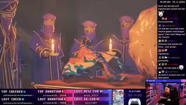 Nach einem Retro-Game-Marathon, der von NES- bis Game-Boy-Klassikern reichte, wurde der Umbau des Streaming-Raumes angekündigt, um Konsolen sichtbar zu integrieren. Im Hauptteil wurde ein umfassender erster Blick auf Monster Hunter Stories 3 gewährt, das mit seinem rundenbasierten Kampfsystem und der Verwaltung von Monsties überzeugte.