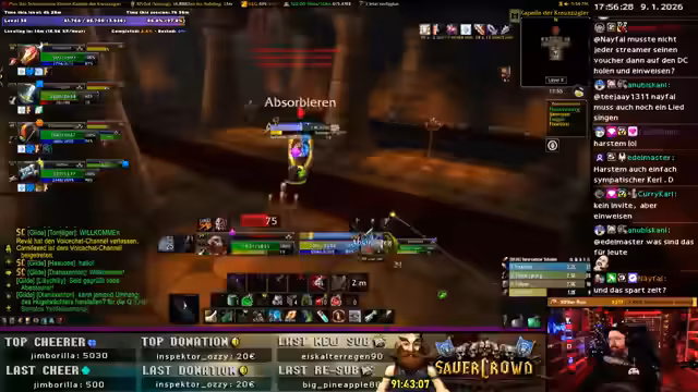 06:04:01Die Kommunikation innerhalb der Gilde spielt eine zentrale Rolle für die Instanz-Planung. Der Streamer versucht, Jenyan für die Gruppe zu gewinnen, indem er sie freundlich über den Voice-Channel (301) informiert. Gleichzeitig werden andere potenzielle Gruppenmitglieder wie Edufan geprüft, der jedoch bereits in einer festen Gruppe spielt. Die Dynamik im Chat und das Engagement der Gildenmitglieder sind entscheidend für das Gelingen des gemeinsamen Runs.