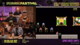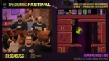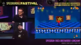 04:45:35Bevor der erste Sonic-Run beginnt, findet eine Button Machine Challenge statt, bei der die Teilnehmer gleichzeitig B- und A-Tasten drücken müssen, um Punkte zu sammeln. Anschließend startet Fabian seinen Run zu Sonic Blast für das Game Gear. Es wird erklärt, dass das Spiel sehr RNG-basiert ist und dass Schilder, die Chaos Emeralds oder Sonic selbst statt Dr. Robotnik anzeigen, Zeit kosten. Die Spielmechanik ist anspruchsvoll, vor allem die präzisen Sprünge und die ungünstige, kleine Kameraansicht, die das Spielen zusätzlich erschwert.