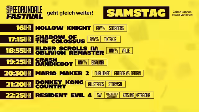 Nach einem kleinen technischen Reset, der ohne größeren Verlauf überstanden wird, wird der Spendenstand erneut erwähnt und erreicht neue Höhen mit einem 14.000-Euro-Meilenstein. Hier werden auch erste Hinweise auf den zweiten Tag des Festivals gegeben, mit Ankündigungen von Rocket-Beans-Mitgliedern wie Fabian und Walle, die Runs zeigen werden. Eine Herausforderung zwischen Streamern in Mario Maker 2 wird angekündigt.