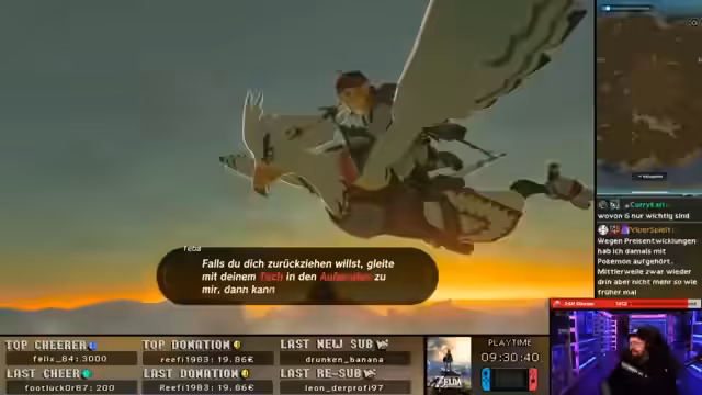 04:10:22Im Verlauf des Streams interagiert der Streamer verschiedenen NPCs in Zelda, besonders mit den Ornis, einem fliegenden Volk. Er nimmt sich Zeit für die Dialoge und nimmt sich Quests an, wie zum Beispiel Hilfe bei der Bekämpfung des Titanen Vamedo. Die Story wird detailliert beschrieben, mit dem Häuptling Kaneli und dem Krieger Teba. Der Streamer zeigt sich beeindruckt von der Tiefe der Charaktere und der Handlung und betont, wie wichtig die Gespräche mit den NPCs für das Spielgeschehen sind. Auch die Herausforderungen, die mit den Aufgaben verbunden sind, werden besprochen, wie zum Beispiel das Training des Bogenschießens.
