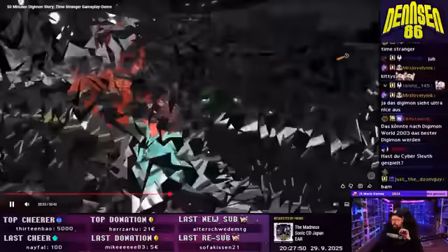 01:57:25Der Streamer kehrt zu Hades 2 zurück, um den laufenden Run abzuschließen. Er konzentriert sich auf das Leveln eines bestimmten Gegenstands und kämpft gegen den Boss 'Prometheus'. Trotz schwieriger条件和 eines schlampigen Builds schafft er es, das 'Testament' abzuschließen. Nach dem Sieg gibt er einen kurzen Ausblick auf den nächsten Stream, bevor er das Spiel beendet und der Stream endet.