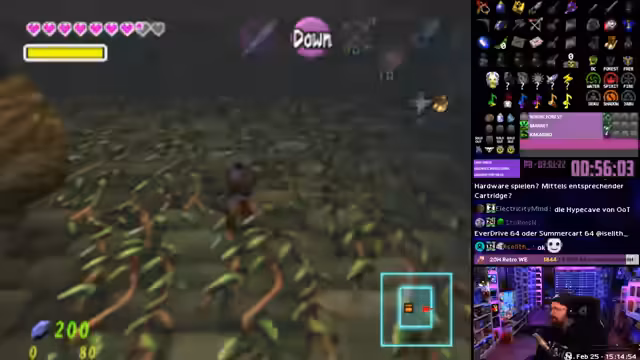 02:51:26Der Streamer beginnt mit einem chronologischen Speedrun von Zelda: Ocarina of Time Randomizer. Er äussert sich frustriert über die unübersichtliche Kartenlayout, insbesondere die verschiedenen Räume, die er nicht kennt. Trotzdem zeigt er sich erleichtert, dass viele Gegenstände schnell gefunden wurden, was ihm bei der Orientierung hilft. Er erwähnt speziell die frühzeitigen Erwerb von Warp-Songs und Bombentaschen, was den Lauf erheblich beschleunigt.