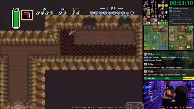 04:00:01Eine Verzögerung des Streams führt zu einer überraschenden Beobachtung über den Zeitverlust und den Generationenwechsel in Spielen. Der Streamer wechselt abrupt von Nioh 3 zu einem Zelda ALTTPR-Race. Er kommentiert das Zocken anderer Generationen kritisch und stellt die Langlebigkeit und den spielerischen Wert mancher Retro-Spiele in Frage, während er gleichzeitig seine eigene Retro-Phase beschreibt.