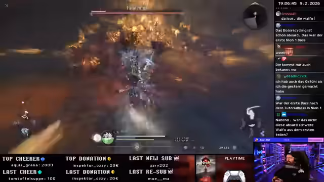 00:01:53Zu Beginn des Streams wird die Vielfalt der Waffentypen in Nioh 3 erprobt. Der Streamer testet den Odachi, die Sense und das Katana, wobei er deren einzigartige Movesets und Haltungen (hoch, mittel, tief) analysiert. Besonders die Sense, die sich wie eine Kombi-Lanze anfühlt, und die komplexen Parry-Manöver mit L1 und einem Richtungsbefehl werden hervorgehoben. Der Fokus liegt darauf, das für den eigenen Stil passende Kampfsystem zu finden, während zugleich der hohe Grad an Anpassungsfreiheit durch Skill- und Stat-Verteilung betont wird.