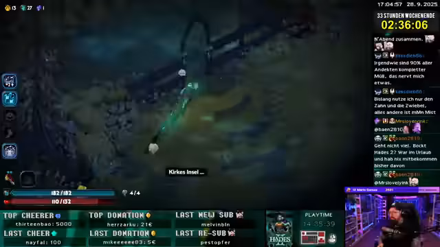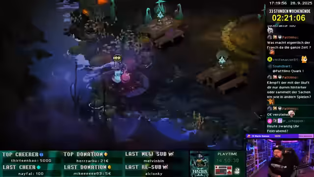 05:03:38Bei der Vorbereitung seines Hades 2-Runs trifft der Streamer wichtige Entscheidungen über die zu verwendenden Fähigkeiten und Modifier. Er entscheidet sich für Modifier, die seinen Angriff verstärken und ihm mehr Kontrolle über sein Mana geben. Ein spezifischer Skill, bei dem seine Angriffe Gegner zurückstoßen, gefällt ihm besonders, da er taktische Vorteile bietet. Er testet verschiedene Kombinationen und plant seinen Weg durch die Regionen, wobei er darauf bedacht ist, Items wie Schädel und Knochen strategisch einzusetzen, um seinen Charakter aufzuwerten und den Run erfolgreich zu gestalten.