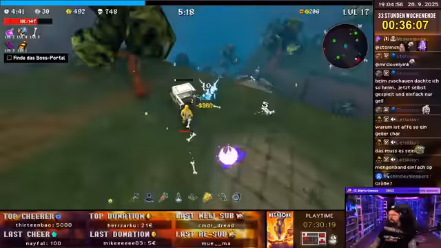 05:20:09Der Streamer entdeckt die starken Effekte seines Mondzaubers neu. Dieser fügt nicht nur 30 % mehr Schaden zu und verlangsamt Gegner im Zielbereich erheblich, sondern wird auch bei Betreten eines Gebiets zu 40 % aufgeladen. Nach dem Wirken erhält er zudem 100 Macht und kann optional verlangsamt werden, was das Spiel für seine Gegner extrem schwierig macht.