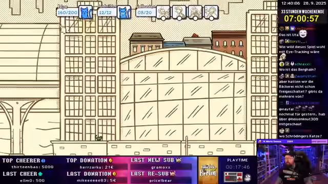 00:35:55Der Streamer navigiert durch die detaillierte Karte von Berlin und sucht nach versteckten Katzen und Stadtbewohnern. Er kommentiert die Grafik des Spiels, findet jedoch Gefallen an den geografischen Fakten, die er über Berlins Sehenswürdigkeiten wie den Hauptbahnhof, die Museumsinsel und die Berliner Mauer erfährt. Das Gameplay erfordert präzises Suchen und Fokus, da viele Katzen gut getarnt sind, was zu humorvollen Reaktionen des Streamers führt.