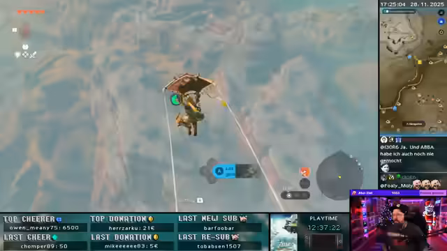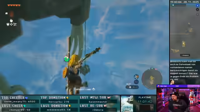 00:00:00Der Stream beginnt mit technischen Schwierigkeiten, insbesondere mit OBS, das abstürzt und den Streamer frustriert. Trotz dieser Hürden wird das Spiel Zelda: Tears of the Kingdom gestartet. Es gibt erste Eindrücke vom Gameplay, wobei der Streamer sofort mit den Herausforderungen des Spiels konfrontiert wird, wie zum Beispiel Gegnern mit viel Leben und unerwarteten Todesursachen durch scheinbar harmlose Berührungen. Die Diskussion über die Unrealistik des Spiels und die Schwierigkeit bestimmter Gegner wie Fledermäuse prägt den frühen Spielverlauf. Es wird auch eine Wette über den Streamer platziert, die sich auf ein Rennen bezieht, was für weitere Unterhaltung sorgt. Die anfänglichen Schwierigkeiten mit der Technik und die sofortige Konfrontation mit den Spielmechaniken setzen den Ton für einen herausfordernden, aber unterhaltsamen Stream.