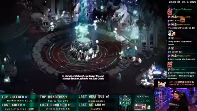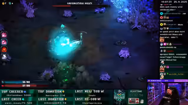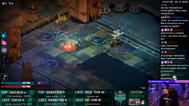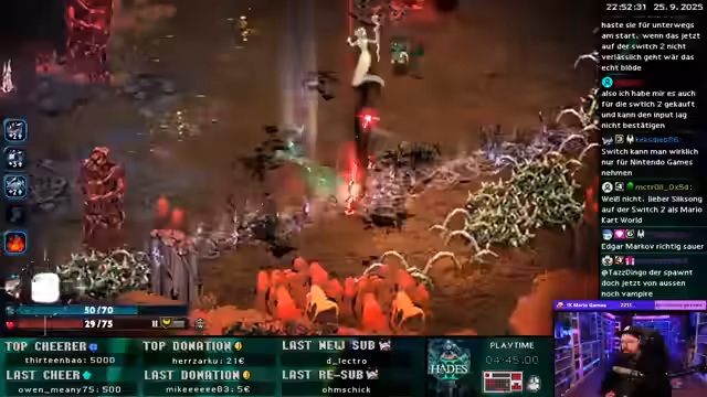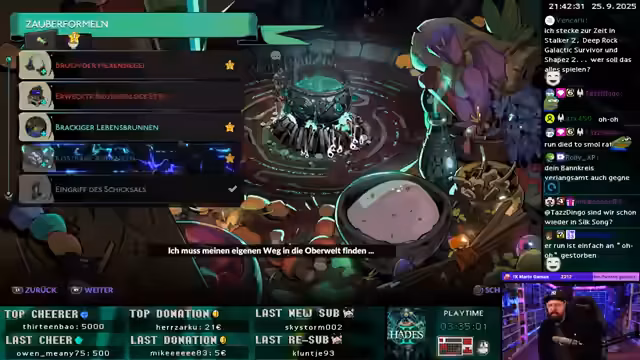 06:54:45Die aktuelle Runde Hades 2 findet mit einem Sieg über einen schwierigen Boss, der als schwerer als jeder andere Gegner beschrieben wird, ihr Ende. Der Streamer betont, wie genial der Boss ist und wie die Musik sich dynamisch an den Kampf anpasst. Anschließend beendet er den Stream und gibt seine Vorbereitungen für den 33-Stunden-Marathon am nächsten Morgen bekannt. Er kündigt an, vorher noch einzukaufen und den Stream mit Kakao zu starten.
