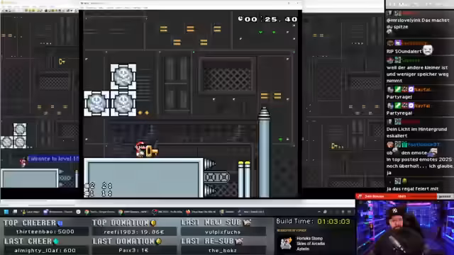 04:17:44Im Stream wird die Spielbarkeit und Schwierigkeit eines neuen Ninji-Levels detailliert analysiert. Der Fokus liegt auf der Frage, ob das Level ohne das Rennen-Feature spielbar ist. Es werden verschiedene Strategien besprochen, wie die Nutzung von Letch-Boosts, alternative Routen und die Positionierung von Power-Ups. Der Streamer testet selbst verschiedene Methoden, darunter framegenaue Sprünge und das Verwenden von Turnblöcken, um einen fairen Skill-Check zu schaffen, der sowohl für Neueinsteiger als auch für erfahrene Spieler eine Herausforderung darstellen soll.
