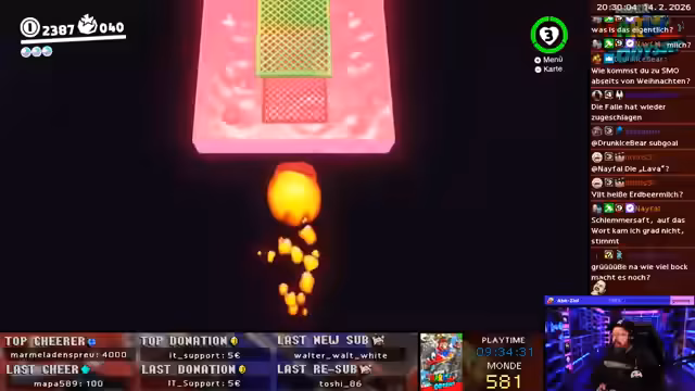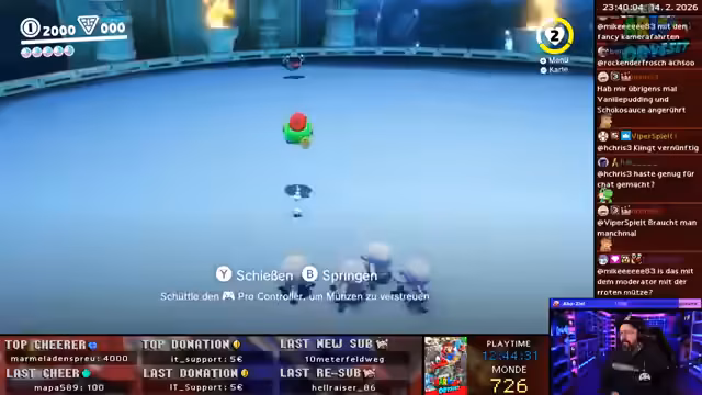 14:42:15Nachdem die meisten Welten abgeschlossen sind und nur noch wenige Monde fehlen, wie z.B. im Pilz- und Forstland, konzentriert sich der Streamer auf die abschließenden Aufgaben. Er beginnt mit dem Geldfarmen, um die restlichen Monde kaufen zu können, was benötigt wird, da er alle 999 Monde sammeln möchte. Um die nötigen Münzen zu beschaffen, spielt er ein Ballonminispiel, bei dem er auf eine Streak achten muss, um die nötige Menge an Münzen effizient zu farmen. Dieses Vorhaben erweist sich als mühsam und fehleranfällig.