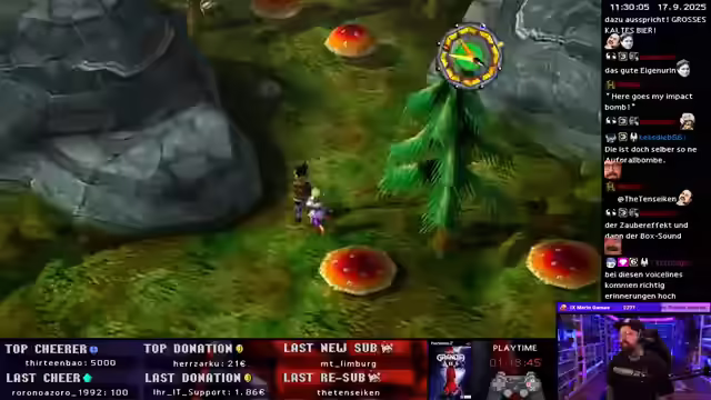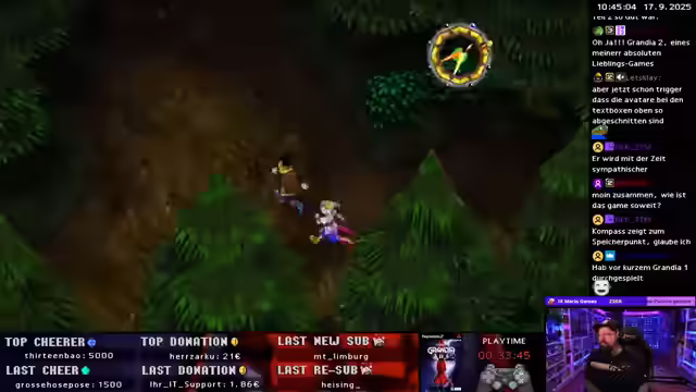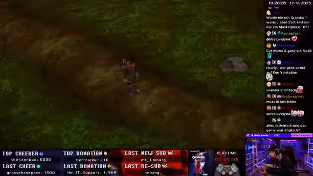 00:22:45Der Streamer beginnt den Stream mit Grandia 2 HD Collection und erklärt, dass er gestern noch nach einem Patch für die Dreamcast-Version gesucht hat, jedoch erfolglos blieb. Er spielt die Play C2-Version, da die Dreamcast-Version zwar eine Fan-Translation gehabt hätte, diese aber nicht mehr verfügbar ist. Die PS2-Version hatte nie eine deutsche Fassung. Er spielt das Spiel im Stream auf Deutsch, da er die Texte gerne liest und es im Stream besser findet. Die HD Collection ist die einzige Möglichkeit, das Spiel auf Deutsch zu spielen, auch wenn es dadurch etwas weniger retro ist.