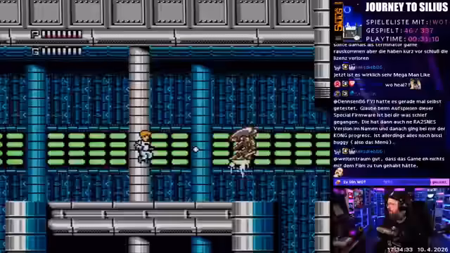 03:22:46Als nächstes wird kurz ein weiteres NES-Spiel angeschaut, das den Streamer anfangs "wahnsinnig" beeindruckt hat. Er lobt die "geile Grafik" und das "coole Waffensystem", findet aber massive Mängel in der Steuerung. Das Springen wird als "scheiße" und "frustrig" beschrieben, was das Gameplay stark beeinträchtigt. Trotz des beeindruckenden Gesamteindrucks wird das Spiel wegen der Controls nicht empfohlen, da es sich "leider nicht gut spielt".
