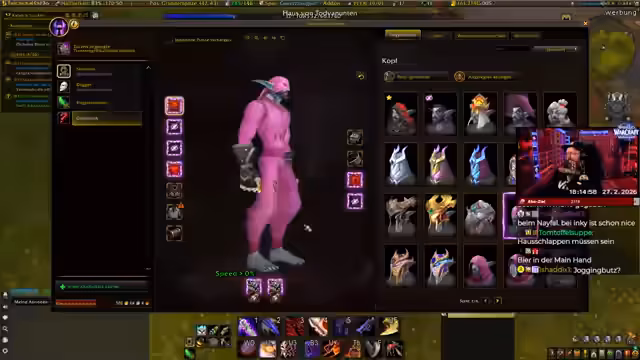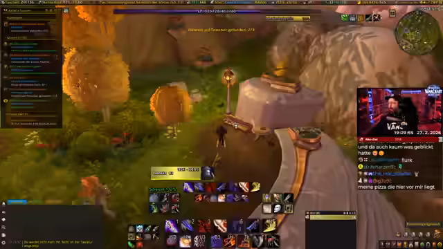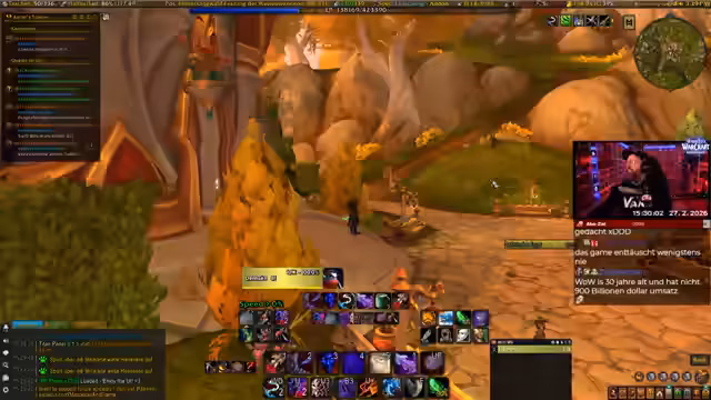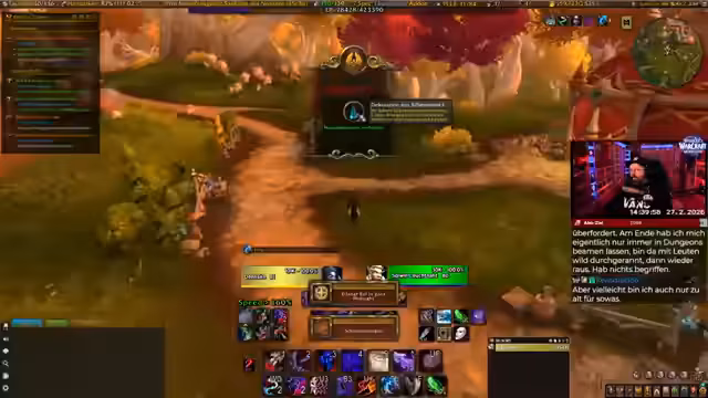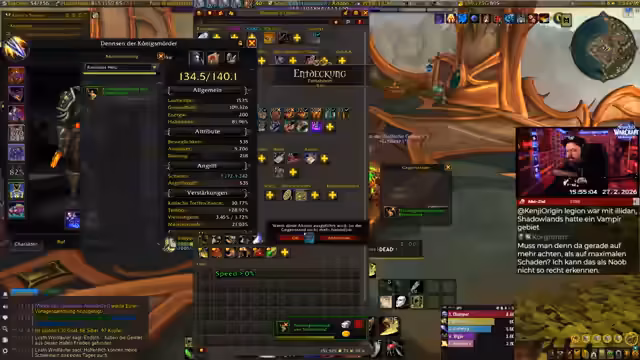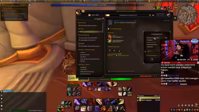 01:34:12Nach einer Phase der Überforderung mit der Fülle an neuen Inhalten entscheidet sich der Streamer für die Berufe Schmiedekunst und Bergbau. Er gibt zu, sich in diesen neuen Berufen noch nicht auszukennen, ist aber gespannt darauf, sie zu erlernen. Gleichzeitig kämpft er mit technischen Problemen, darunter ein nicht funktionierender Gruppenframe, Probleme mit Add-ons, die zu Todesproblemen führen, und Performance-Einbrüche, die das Gameplay erschweren.