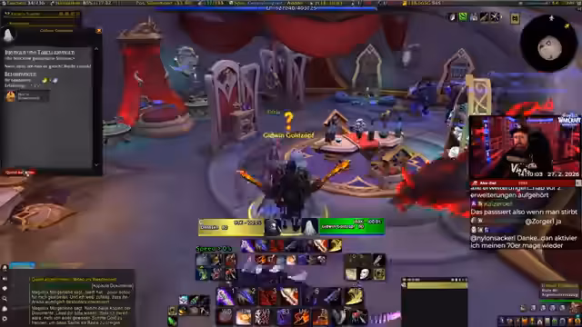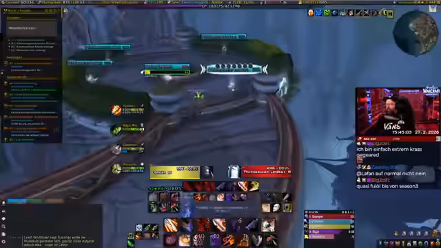 00:00:00Der Stream beginnt mit der Ankunft des Streamers im neuen WoW Midnight. Er loggt sich mit seinem Schurken ein, der eine hohe Geschwindigkeit im Stealth besitzt. Zuerst muss er seine Gildenmitgliedschaft klären, indem er seinen Charakter zum Offizier macht, um Community-Mitglieder einzuladen. Ein technisches Problem tritt auf, als seine Cast-Bar falsch positioniert wird. Er versucht, dies über die Add-on-Einstellungen zu beheben, merkt aber, dass die Anpassungen anfangs etwas unübersichtlich und chaotisch wirken.
