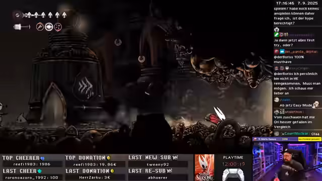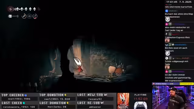 Nach einem technischen Neustart entspannte sich der Spieler bei der Erkundung der Welt von Hollow Knight: Silksong. Später wurde ein sehr kreativer und fairer Super Mario World Hack gespielt, der trotz anfänglicher Schwierigkeiten überzeugte.