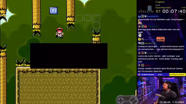 00:40:26Nach dem erfolgreichen Game-Duell wechselt der Streamer zu Super Mario World und startet einen neuen, zuvor heruntergeladenen Hack. Dieser Hack beginnt mit einer ungewöhnlich schwierigen und für den Streamer frustrierenden Sequenz, dem sogenannten Wiggler-Jump am Anfang, die er zunächst als schlecht设计的 Bewertung. Trotz des anfänglichen Eindrucks, dass es sich um einen schlechten Hack handeln könnte, gibt er ihm eine zweite Chance und stellt fest, dass die nachfolgenden Level kreativer und fairer sind. Er beschreibt das Gameplay als sehr flowy und kreativ.