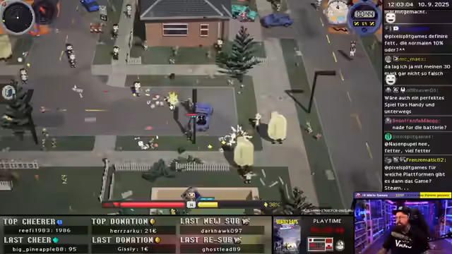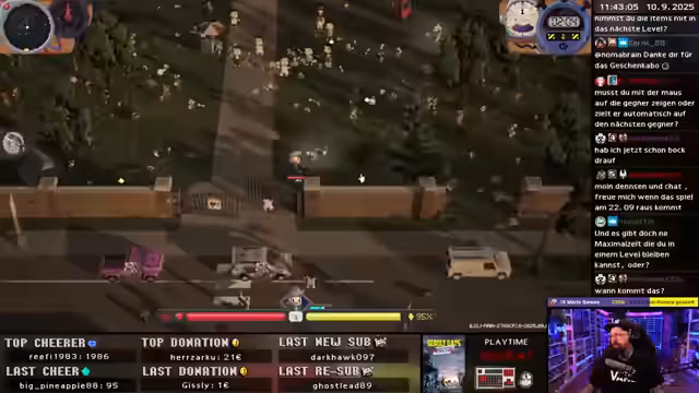 01:16:07Nach den technischen Schwierigkeiten mit Hitman 2 wird entschieden, zu Deadly Days Roadtrip zu wechseln. Es wird betont, dass das Spiel sehr süchtig macht und bereits am Vorabend für stundenlange Sessions gesorgt hat. Es wird erklärt, dass es sich um ein Survivor-Spiel mit Item-Management und einem Leaderboard handelt, in dem der Streamer sich verbessern möchte. Der Key für das Spiel wurde im Rahmen einer Kooperation mit Hand of Blood Publishing vergeben. Es wird gezeigt, wie man im Spiel XP sammelt, Charaktere freischaltet und permanente Buffs erhält. Das Ziel ist es, im Leaderboard möglichst weit zu kommen, indem man möglichst viele Tage überlebt. Es wird demonstriert, wie man die Map erkundet, Ressourcen sammelt und den Tank des Busses füllt, um ins nächste Level zu gelangen. Nach jedem Level kann man Waffen upgraden und neue Items ausrüsten. Es wird erklärt, dass man im Spiel zwischen automatischem und manuellem Schießen wechseln kann. Es wird ein Feuerwerks-Item gefunden, das eine Chance hat, Explosionen auszulösen. Es wird gezeigt, wie man gefundene Items repariert und verkauft, um Schrauben zu erhalten, die als Währung dienen.