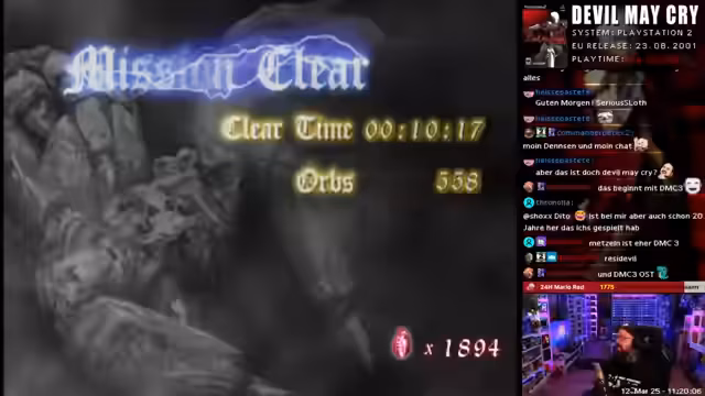 00:23:51Der Streamer beginnt seine zweite Session von Devil May Cry 1 und betont, dass es sein erstes Mal ist, die Story zu spielen. Er findet das Spiel cool, aber auch herausfordernd, insbesondere aufgrund fehlender Checkpoints. Er nimmt eine Müllermilch Limited Edition zu sich und findet den Geschmack okay. Er erklärt, dass er am Retro-Mittwoch Gastspiele lieber ans Ende setzt, da er die Spieldauer nicht einschätzen kann. Er hatte kürzlich zwei Stunden und 48 Minuten gespielt und einen guten Eindruck vom Schwierigkeitsgrad gewonnen. Anfangs fand er das Spiel naja, aber jetzt, da nach und nach ein paar Techniken dazukommen und der Kampf komplexer wird, findet er es geil. Er spricht über das Abgraden von Fähigkeiten und das Sparen von Orbs. Er überlegt, ob er sich einen Vital Star oder den Air Hike holen soll. Er erinnert sich daran, dass das Spiel bockschwer ist und er an der einen oder anderen Stelle schon gegrindet hat. Er muss erstmal wieder ins Spiel reinkommen und die Buttons klarkommen, die er als sehr weird bezeichnet.
