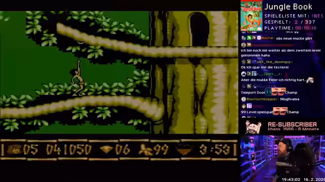 02:30:54Der Stream wechselt zu 'Das Dschungelbuch', einem Jump 'n' Run Spiel. Die Steuerung des Spiels wird als sehr schwammig und träge kritisiert. Das Gameplay besteht darin, in jedem Level Kristalle und Diamanten zu sammeln, was als dumm und frustrierend empfunden wird. Dies führt zu einer massiven Wutreaktion des Streamers, der das Spiel als 'Müll' und 'Lebenszeitverschwendung' bezeichnet und abrupt beendet.