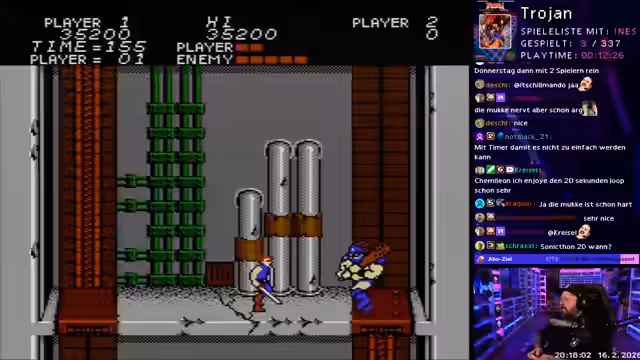 03:43:19Der Stream stellt ein neues NES-Format vor, bei dem zufällig ausgewählte Spiele gespielt und bewertet werden. Der Fokus liegt auf kurzweiligen, kurzen Spielen. Der Streamer spielt ein als 'heftig geil' und 'Highlight-Game' bezeichnetes Spiel namens Trojan. Dabei erlebt er intensive Momente, findet das Spiel aber spannend und vergibt trotz durchwachsener Musik und Grafik hohe Wertungen, insbesondere für den Spielspaß und die Steuerung.