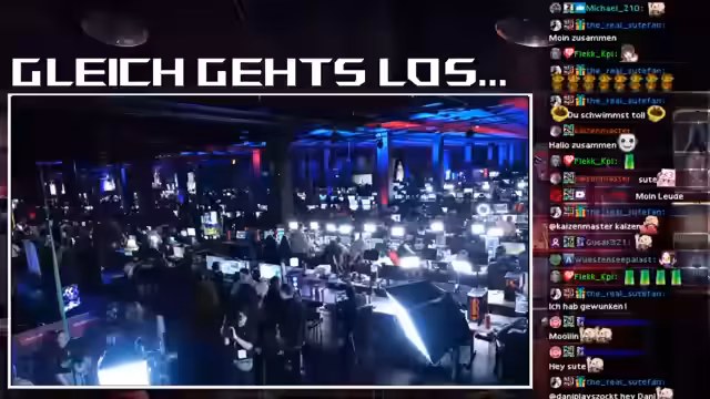 00:00:02Der Stream wurde von der GamescomLAN aus gestartet. Zunächst beschäftigte sich der Streamer mit der technischen Einrichtung, suchte nach Musik und sorgte für eine passende Audio- und Videoübertragung. Dabei stellte er fest, dass das Mikrofon weit entfernt war und er sich an das fremde Setup erst gewöhnen musste. Gleichzeitig wurde erwähnt, dass die Umgebung lauter als erwartet war, was die Konzentration erschwerte.