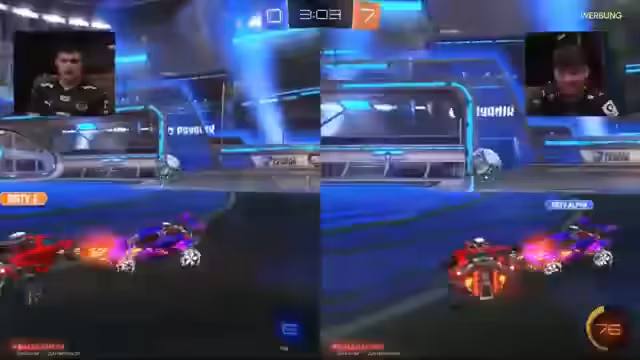 00:30:45Die ersten Runden der Challenge werden auf einer refurbishiten Xbox One mit Rocket League ausgetragen. Die Runde startet sehr unkonventionell, da Streamer und Gäste die Steuerung erst im Spiel erlernen müssen. Obwohl beide Seiten sich gegenseitig Fehler vorwerfen, wird schnell deutlich, dass Rocket League ein hohes Maß an Kontrolle und Erfahrung erfordert. Die Spielsituation wird von Zufall und 'Glückstoren' dominiert, was zu teilweise frustrierenden, aber auch humorvollen Momenten führt.