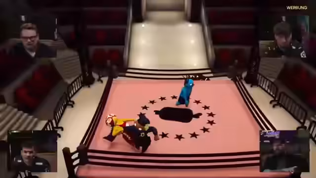 02:15:57Während des Gangbeasts Spiels zeigt sich eine große Frustration über das Spielprinzip. Ein Spieler wirft dem anderen vor, zu cheaten, da er ihn permanent festhalte und nicht loslasse. Die Steuerung wird als unlogisch und unfair beschrieben, da man nicht immer wirft, wenn man es beabsichtigt. Der Spielverlauf wirkt für viele wie reiner Zufall. Am Ende wird das Spiel als das randomste aller Titel bezeichnet, trotz des anscheinenden hohen Skillfaktors, der sich aber in der Praxis kaum entfalten kann. Es bleibt unklar, wer am Ende Punkte holen konnte, da die Wut über die Spielmechanik im Vordergrund steht.
