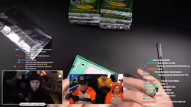 03:42:13Fabo zieht zwei Packs, jedoch ohne Holo-Karte. Es wird festgestellt, dass Personen, die zwei Packs ziehen, oft weniger Glück haben. Daniel Slum zieht einen Waller, der ihm gegönnt wird. Es wird die Professionalität des Streamers Marcel gelobt, der die Karten ordentlich verpackt. Ein Zuschauer fragt, welche Streamer noch nicht gezogen wurden. Metashi zieht zwei Packs, jedoch ohne Holo. Ein einzelnes Pack kostet über 400 Euro, eine ganze Box 15.000 Euro. Ein Gewinnspiel mit 1000 Euro wird angekündigt. Amazon Prime-Kunden können einen Streamer ihrer Wahl kostenfrei monatlich subscriben.