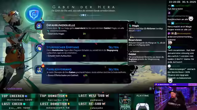 05:11:17Es wird versucht, in Hades einfach nach oben zu gehen und auf Zeus zu hoffen, wobei direkt ein Upgrade für Angriffe und Spezialität mit Entladung gewählt wird. Ein heroischer Skill wird gebufft, um mehr Schaden zu verursachen und schneller Begegnungen abzuschließen. Es folgen weitere Entscheidungen bezüglich des Builds, wie die Wahl des Hammers, der Angriffe für zwei Sekunden bestehen lässt und automatisch zurückkehren lässt. Zeus wird erneut aufgesucht, um das Mana-Management zu verbessern und Kettenblitze zu aktivieren. Hermes wird als weniger interessant eingestuft, während Poseidon in Betracht gezogen wird. Es wird mit verschiedenen Skills experimentiert, darunter Versengen und Entladung, wobei das Versengen als besonders effektiv erkannt wird. Der Hammer wird für 20 Begegnungen gewählt, um den Omega-Angriff zu beschleunigen, was sich als brutal erweist. Mana-Probleme werden thematisiert, und es wird nach Möglichkeiten gesucht, Mana gezielt zu regenerieren.