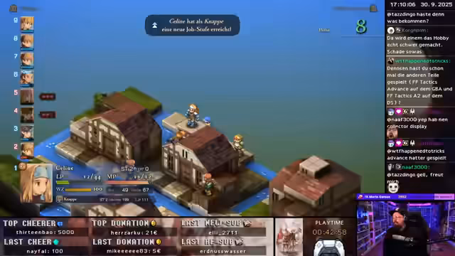 00:30:50Nach einem intensiven Segment der Buchstabenrätsel-Spiele des Streamers, das Charaktere und Spiele behandelt, wechselt der Fokus zur Vorstellung von Final Fantasy Tactics. Nach den Einstellungen zur Sprachausgabe und Untertitel beginnt das Spiel mit einer Neufassung von 1997, die eine Sprachausgabe und verbesserte Grafik bietet. Der Streamer wählt den 'Harten' Schwierigkeitsgrad und startet direkt in das Tutorial, die Schlacht bei der Akademie in Gariland.